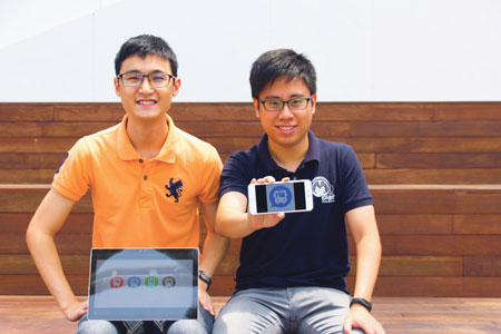 NTU undergraduates Marcus Tee and Yap Deep came up with an interactive solution to the lack of reliable information source on bus arrival times. PHOTO: VALERIE LAY