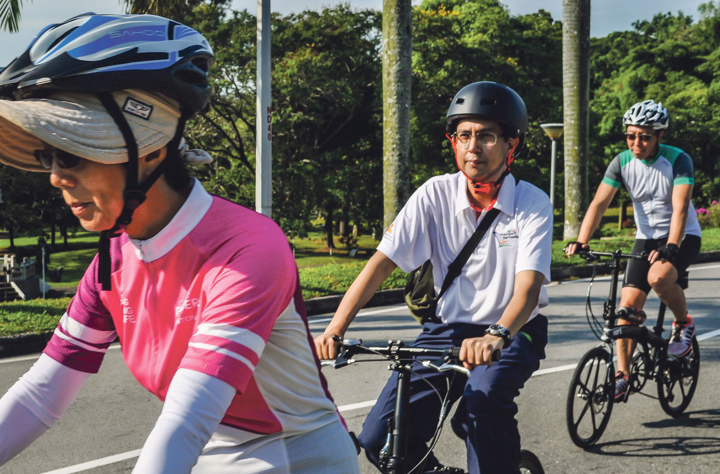 As part of the bi-monthly Discovering Singapore Ride (DSR) event that aims to promote cycling, Parliamentary Secretary for Education and Social and Family Development Dr Faishal Ibrahim led a group of 40 participants from the Ministry of Transport, Land Transport Authority (LTA) and other cycling enthusiasts on a cycling trip around the Jurong area and across NTU on 24 Sep.