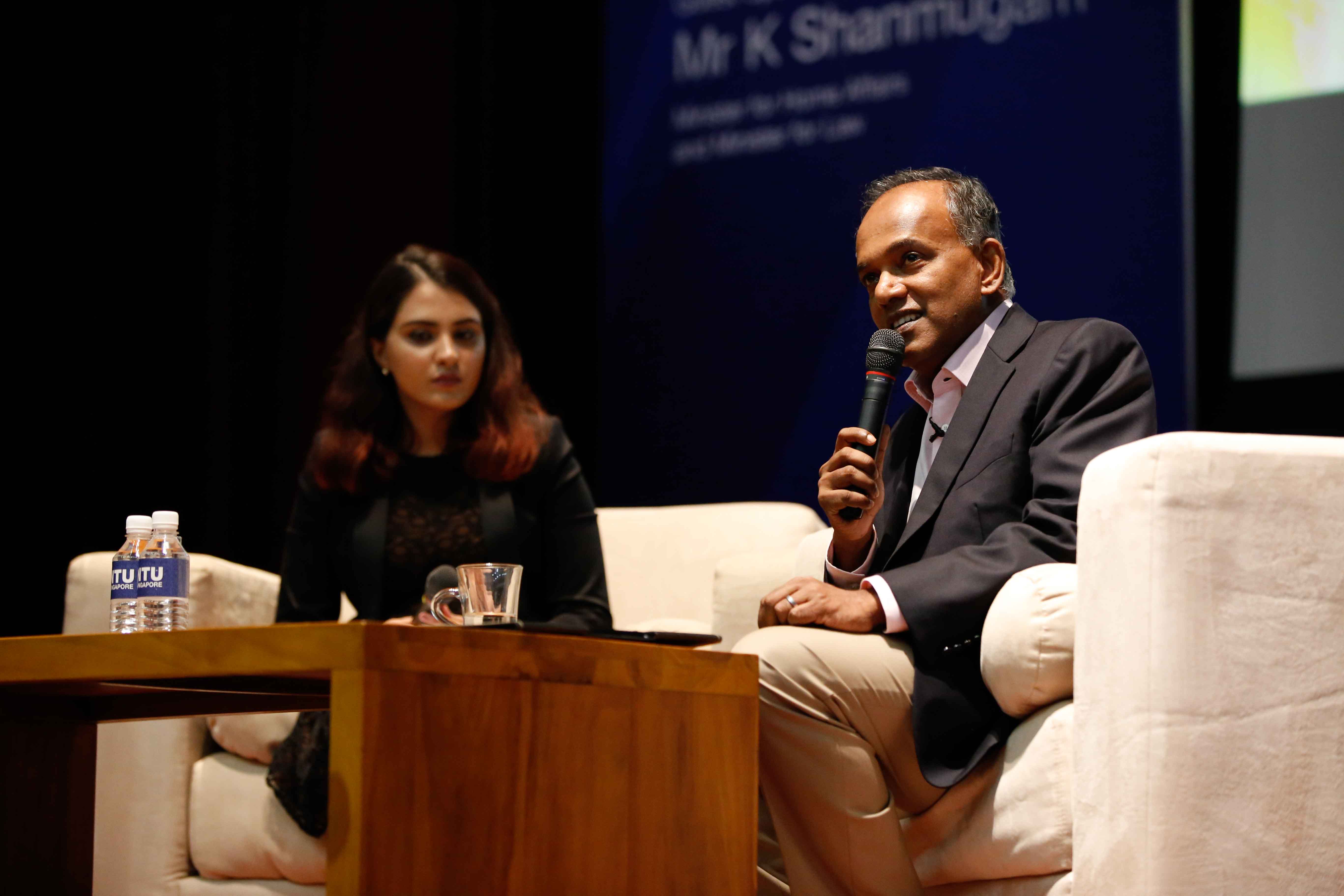 Minister for Home Affairs and Law K Shanmugam urged students not to be complacent about Singapore’s success. PHOTO: JAMES NG