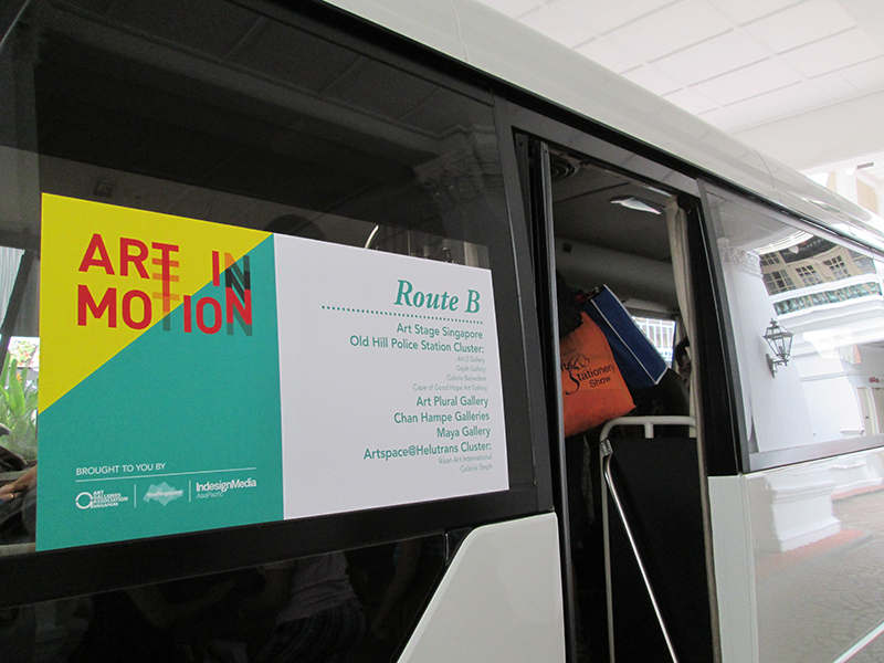 LOGO: AGAS Art in Motionhttp://www.agas.org.sg/aim_event.acv Route A : First bus leaves from Old Hill Street Police Station at 11.00am. Last bus leaves at 6.30pm (Intervals every 15-30mins) Route B : First bus leaves from Art Stage Singapore at 11.00am. Last bus leaves at 6.40pm (Intervals every 15-30mins) |