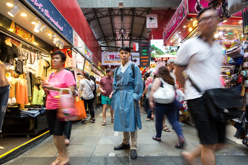 Sung Chang Da, 23, stands out from the crowd at Bugis Street in his hanfu.