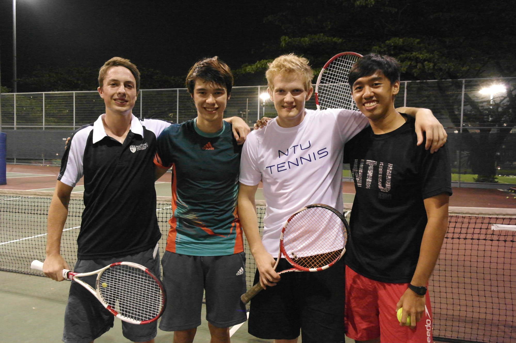 GETTING IN FULL SWING: Stephan Köpernik, 21, from Germany, enjoys bonding with peers through an intense game of tennis. He has joined the NTU Tennis Club and forged strong friendships with his fellow teammates.  PHOTO: ALICIA LIM