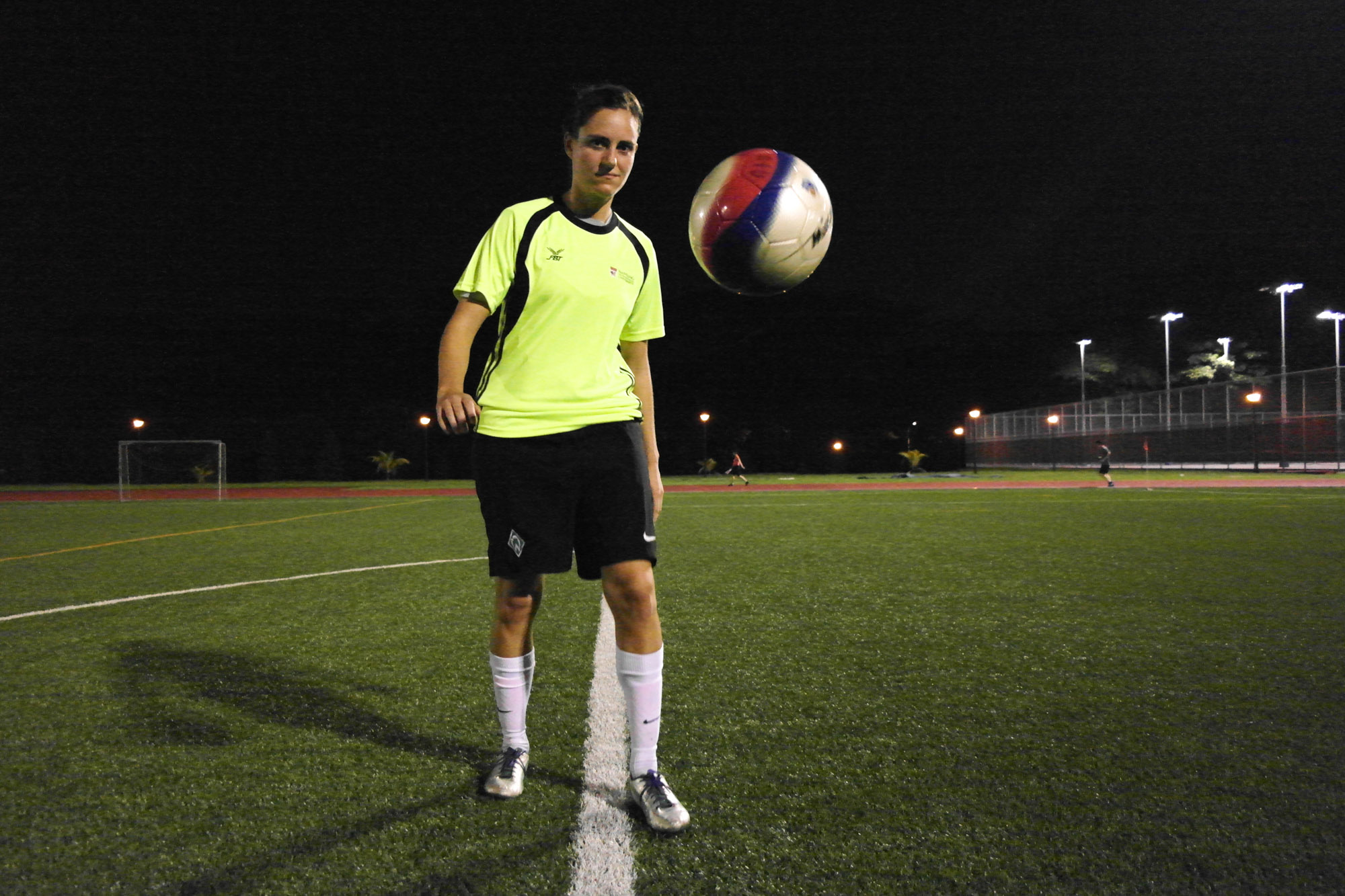 WARMING UP: Emily Willson, 21, trains on the tracks at NTU’s (SRC) in the evenings. The cross-country athlete from Colorado trains only at dusk due to Singapore’s warmer climate.