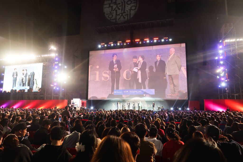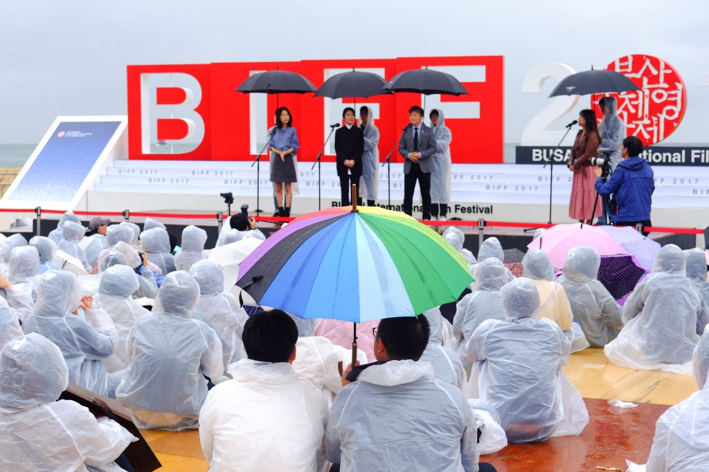The closing ceremony of the 22nd Busan International Film Festival took place at the outdoor theatre of the Busan Cinema Center, the same venue where Open Cinema screenings are held.