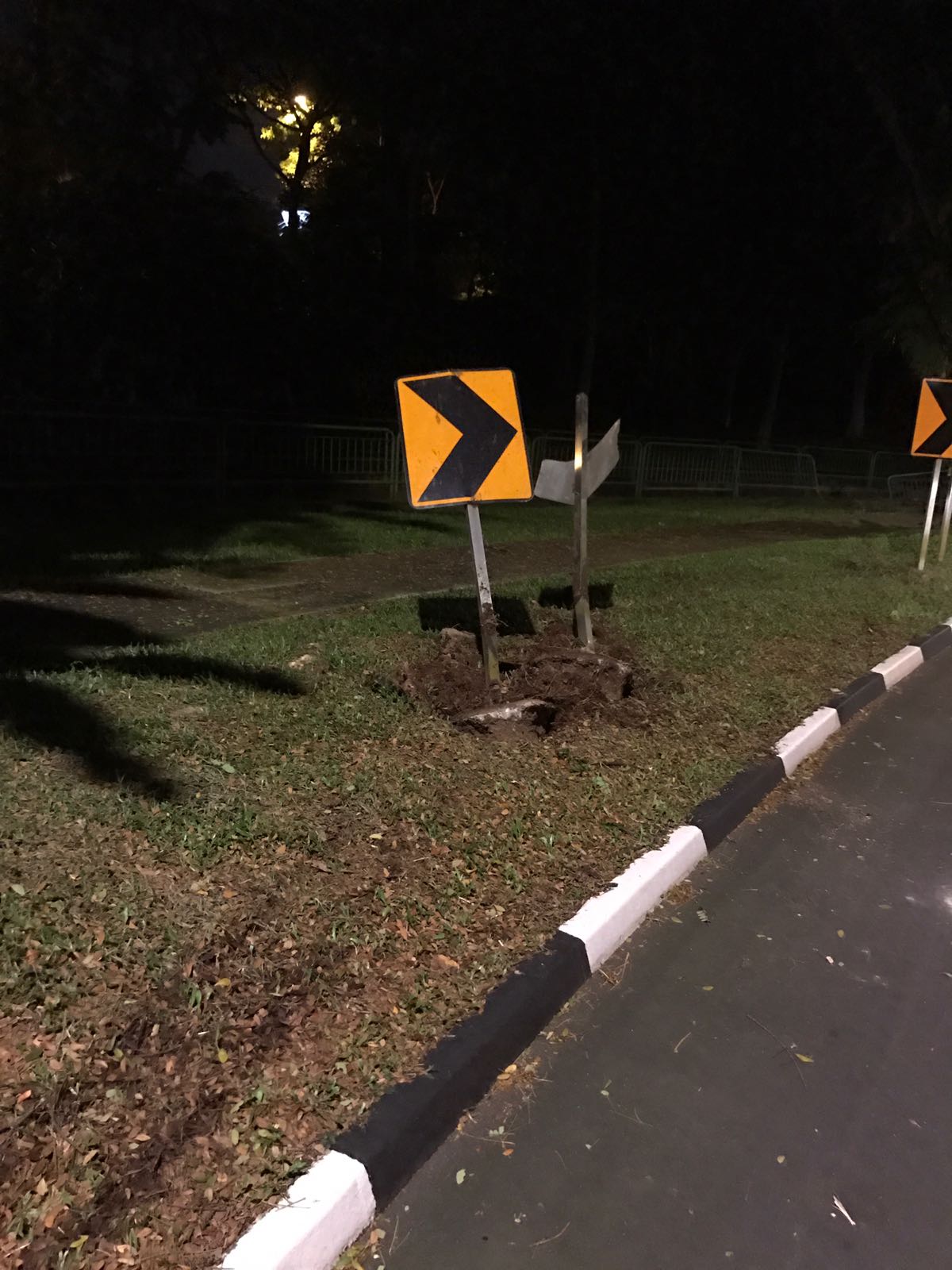 The site was clear when Syafiq passed by again about midnight, but a road sign along the side of Nanyang Drive had been badly damaged, he added.
