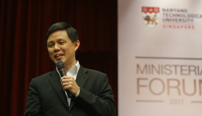 “We should not look inwards, but treat the world as our market,” Minister in the Prime Minister’s Office Chan Chun Sing tells about 400 students during the NTU Ministerial Forum 2017.