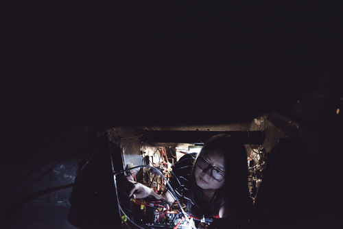 Maximising her petite frame, Emily enters the trunk of the NV-IX to complete all the wirings for the circuit boards in the race car. PHOTO: ZHENG JUNCEN