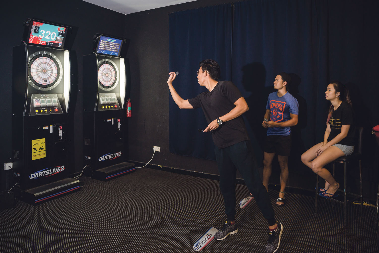 After their meals at Canteen 2, NTU students Jabrian Toh, Lin Shiyi and Hong Yun Ting (from left to right) play darts at the Black and White Room. PHOTOS: ZHENG JUNCEN