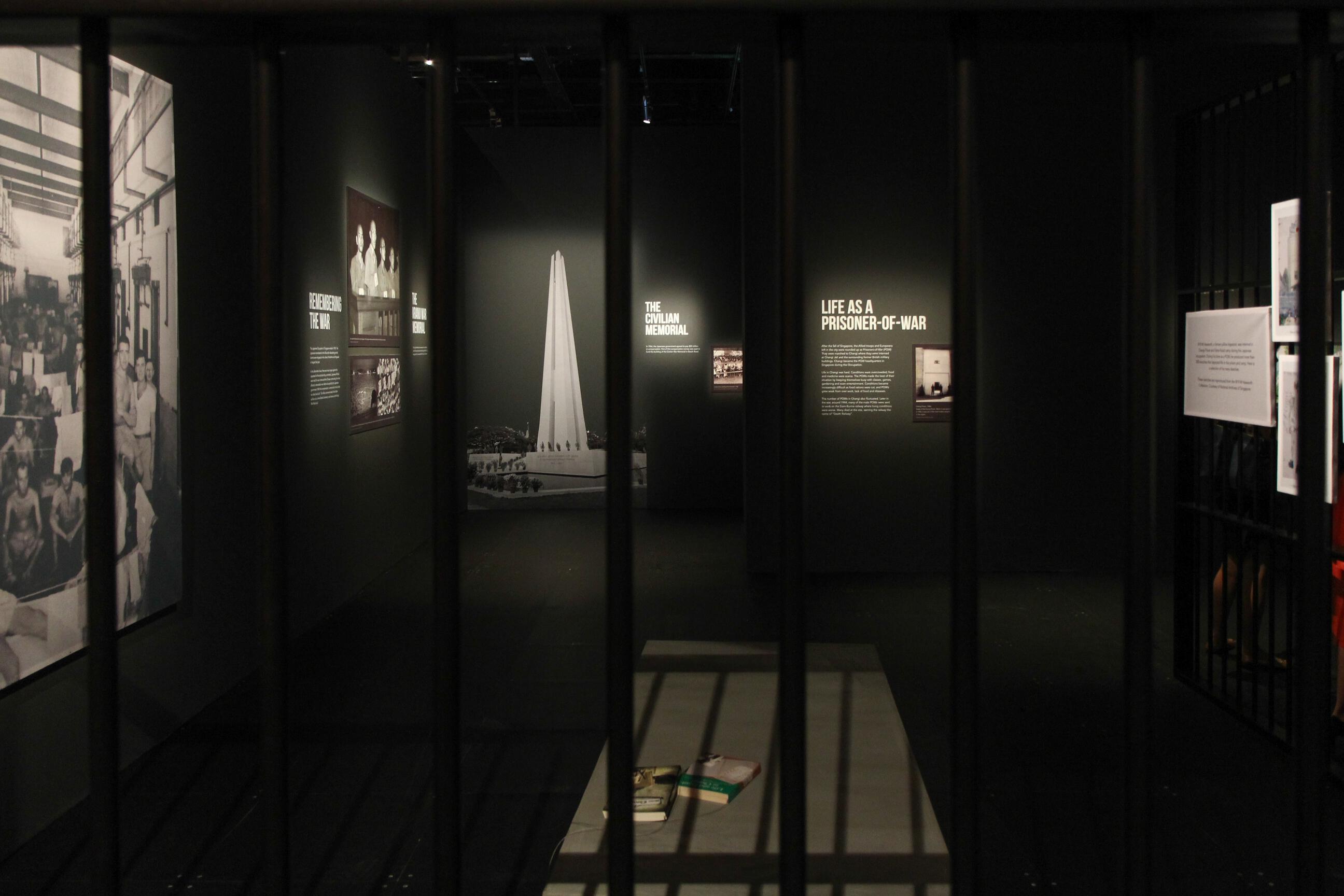 Visitors can sit on a bench behind black bars in an installation simulating the experiences of prisoners-of-war under the Japanese. Drawings of life in Changi Prison by former prisoner-of-war W. R. M. Haxworth are also on display.