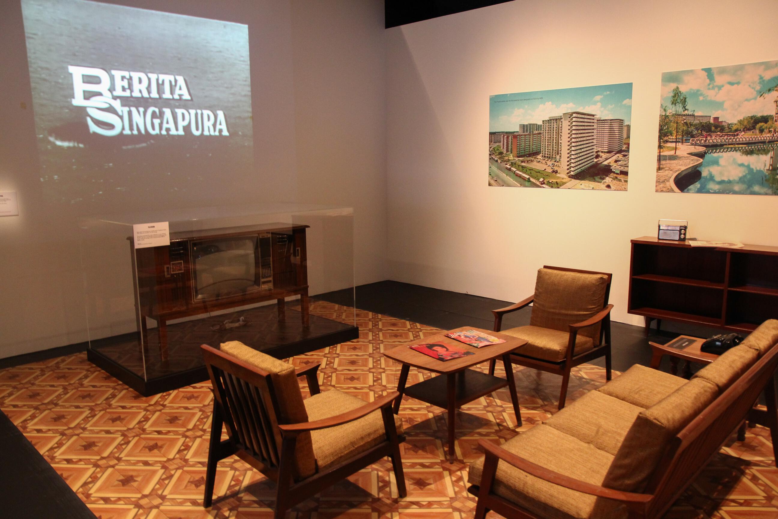 Visitors can sit on the wooden sofa set to watch black and white excerpts about new housing estates from Berita Singapura, an old Singapore newsreel programme. Photographs from the 70s of life in the housing enclaves, like Toa Payoh at Night, are also on display.