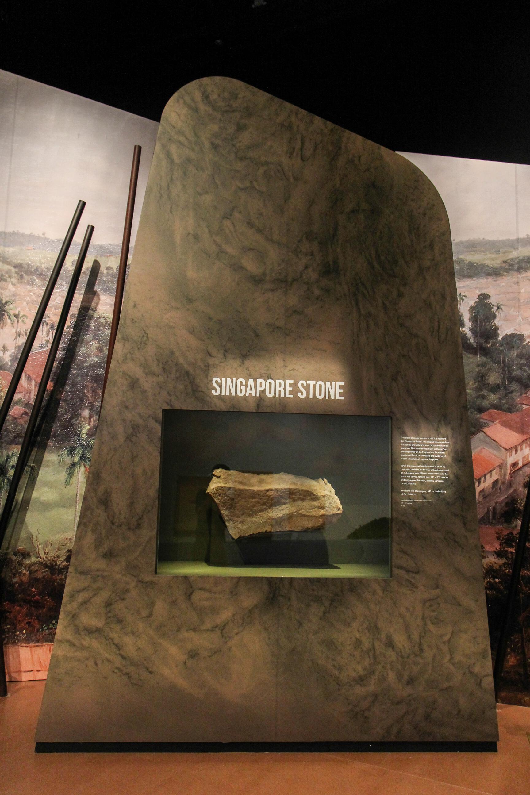 The Stone originally stood by the Singapore River, until it was blown apart by the British in the 18th-century to widen the river mouth. The fragment on display is almost 200 years old and was salvaged from the blast. Pale yellow and weathered-looking, its inscriptions are now only faintly discernible.