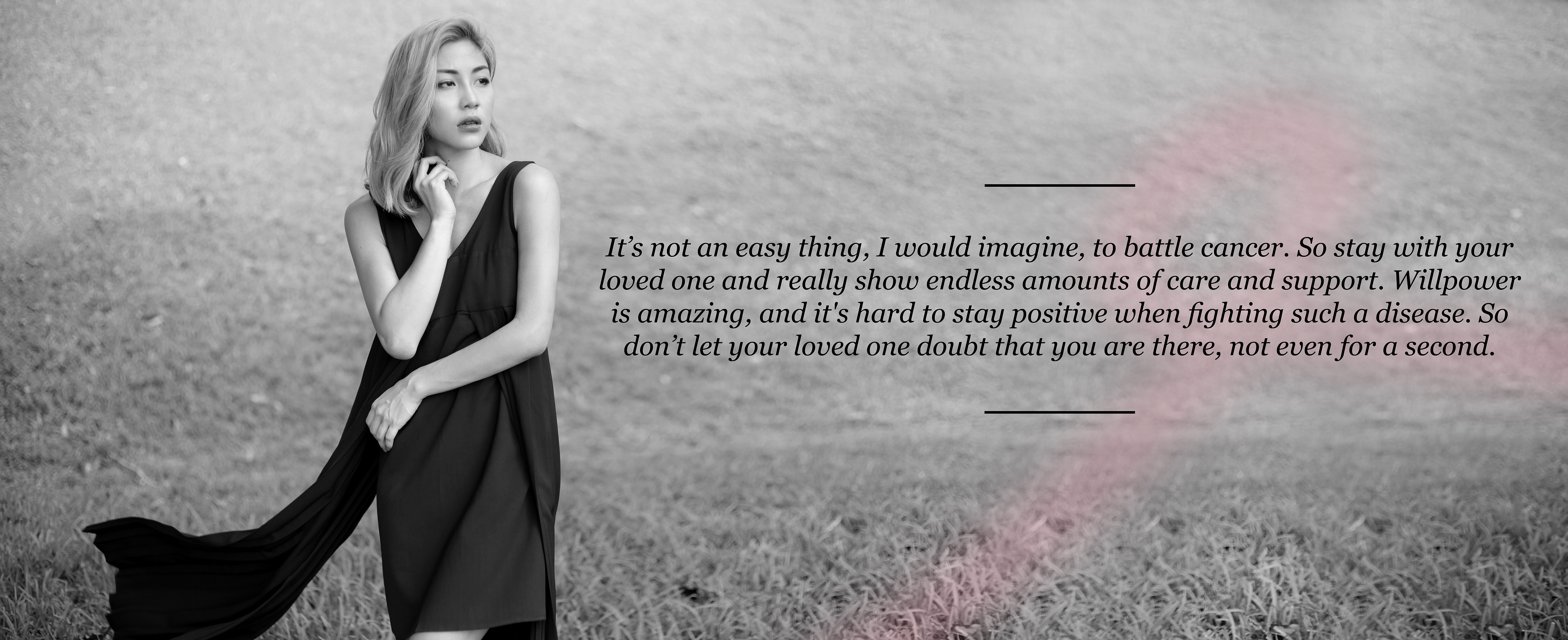 Honestly, I really don’t know what to say. It’s an incredibly hard thing to do, and I would still find myself falling if it happened again. When my mom died, I was really young and I honestly didn’t know what was going on or even how to handle it. I didn’t even really understand grief fully till 4-5 years later. But if anything, I would say that you can’t handle it alone. I found a lot of comfort and catharsis through the years talking to my brother or my dad about it. It’s not an easy thing, I would imagine, to battle cancer. So stay with your loved one and really show endless amount of care and support. Will power is amazing, and it hard to stay positive when fighting such a disease so don’t let your loved one doubt that you are there, not even for a second.