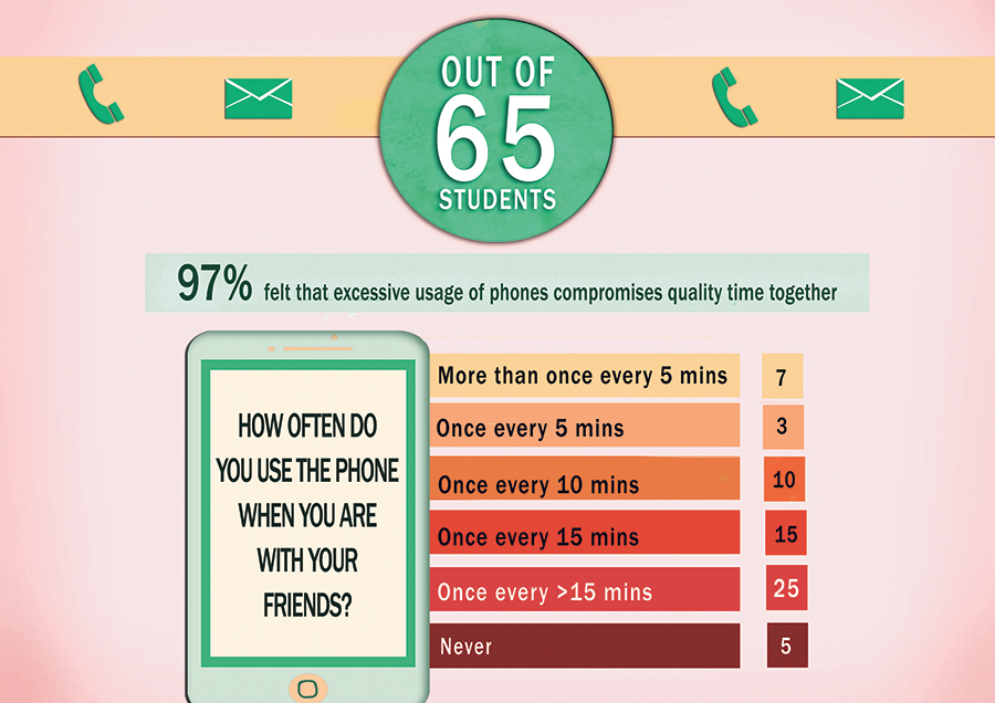 When the Chronicle surveyed 65 NTU students, only five said they never use their phones when they are in the company of friends. More than half admitted that they check their phones at least once every 15 minutes.