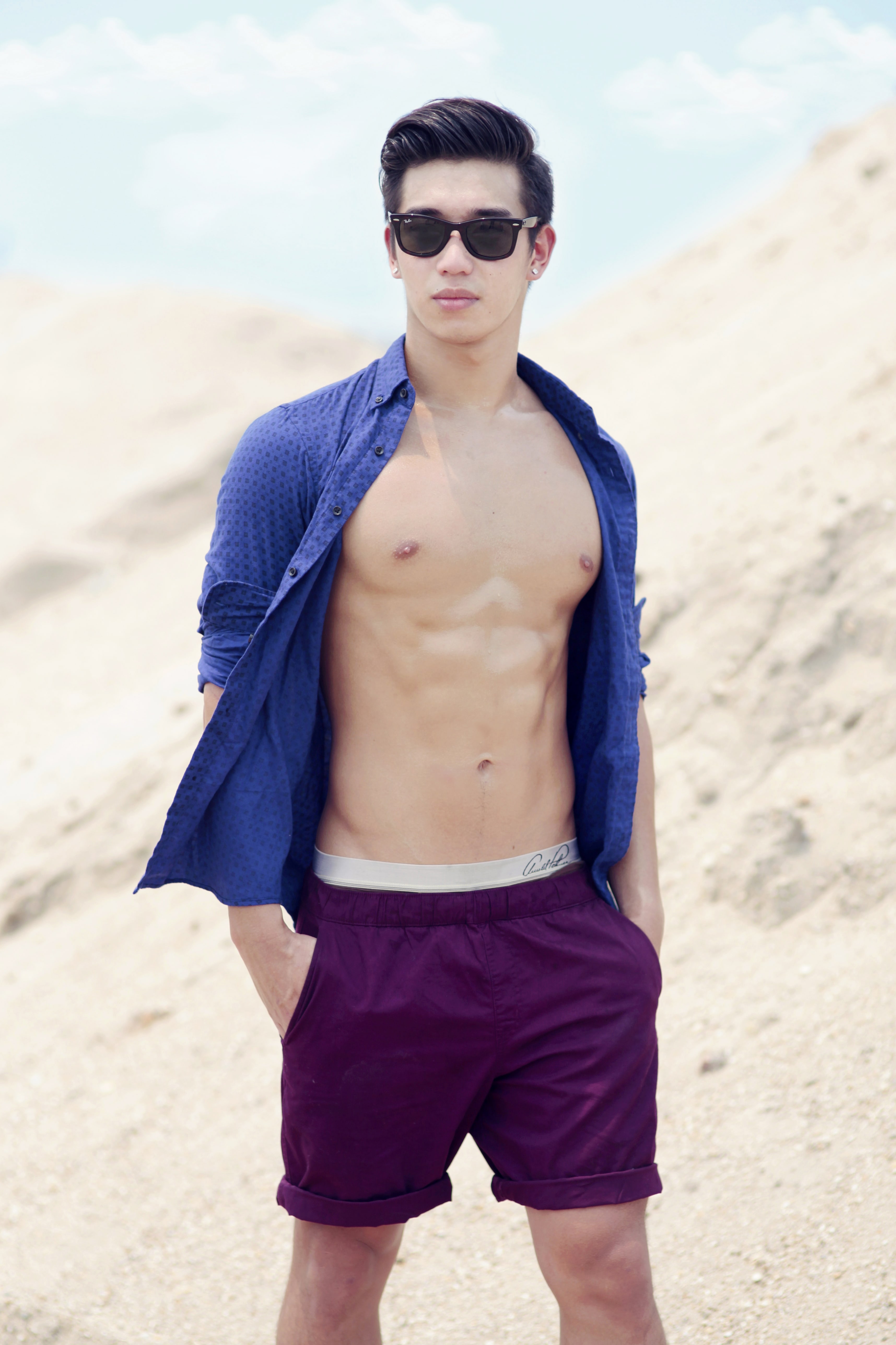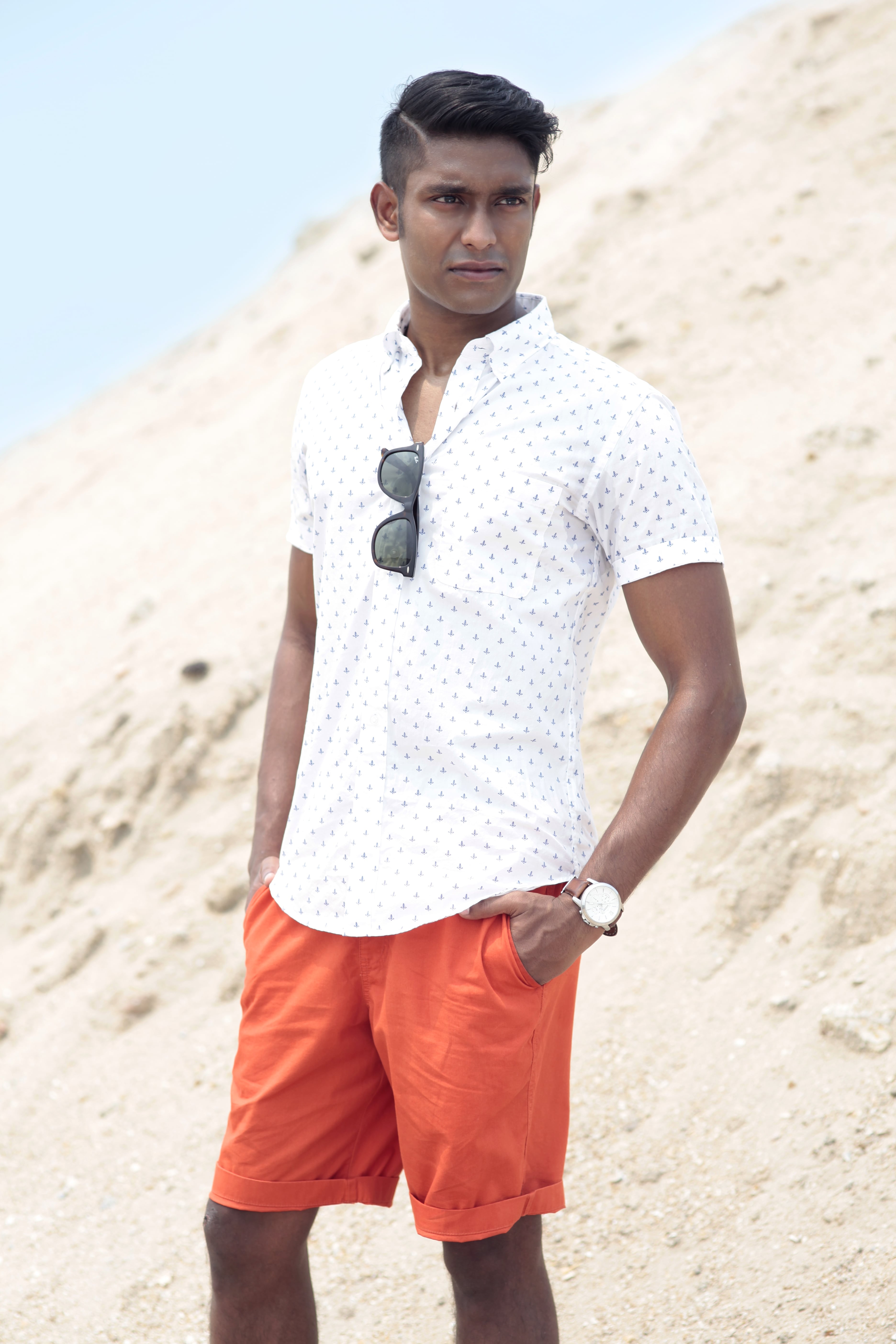 On Nabil: Men Denim Printed Long Sleeve Shirt: Uniqlo, $49.90; Men Chino Shorts: Uniqlo, $29.90; Others: Model’s own.