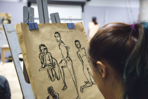 Sketches done by a first-year year student as part of the foundation drawing class. Live drawing also takes place in various art modules under ADM.
