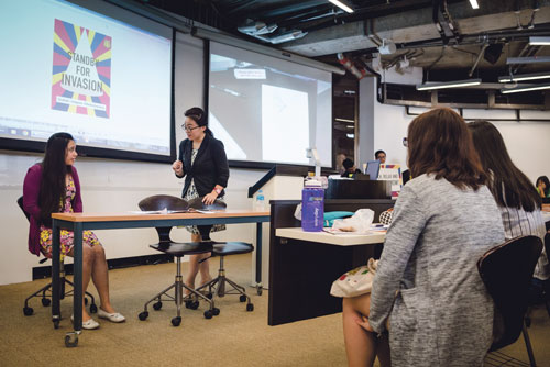 Putting the theatre in lecture theatre, FYP group Theatre Invasion Singapore has been invading lectures in NTU to promote local theatre to students. PHOTO: ZHENG JUN CEN